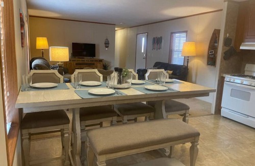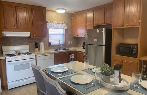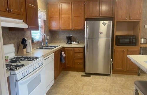 Bedrooms include: master bedroom with king size bed, bedroom #2 includes a queen size bed, bedroom #3 has 2 bunks with 2 twin size beds, a queen and full size bed. All linens including sheets, bedspreads, towels are new. The kitchen is fully equipped with propane range/oven, microwave, refrigerator/freezer, dishwasher & garbage disposal. All cookware & dinnerware are new.
