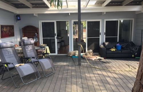 Modern home with 2 large bedrooms, bathroom, laundry and new kitchen and family room. The whole house has been recently renovated with a huge outdoor deck! Total serenity! There is a wood heater and air conditioner. The back yard is visited by Kangaroos, Koalas, Echidna and lots of birds.
