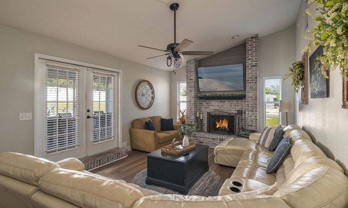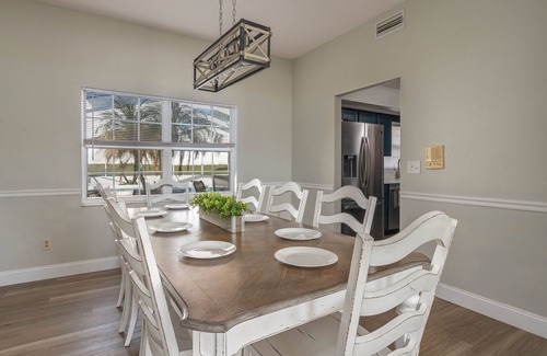 Large 4 bedroom home with plenty of space for families. Screened in-ground pool with hot tub and a screened porch with tables and seating for 12+. Fenced backyard for pets, palm trees, patio, fire pit and gas grill. House is stocked and ready for you with shampoo, conditioner, body wash, towels, blow dryer, iron, ironing board, snacks and more, even a water bottle and chocolate on the nightstand to kick off your stay! Kitchen- Complete with coffee bar and cozy breakfast nook, this kitchen has everything you need to feel at home! Equipped with a Keurig Duo coffee pot so that you can use a single serve kcup or make a pot of coffee. Kitchen is stocked with pots and pans, crock pot, electric skillet, blender, toaster, dishes, utensils and basic seasonings. Bonus: french press & moka pot. Our family loves the walking trails around the lake, almost guaranteed to see some Sand Hill Cranes. Only a few steps from the front door! Want to take the kids to a playground? You have two within walking distance. Basketball, skateboarding or boating? Also, all within a short walk. Making core memories that last!