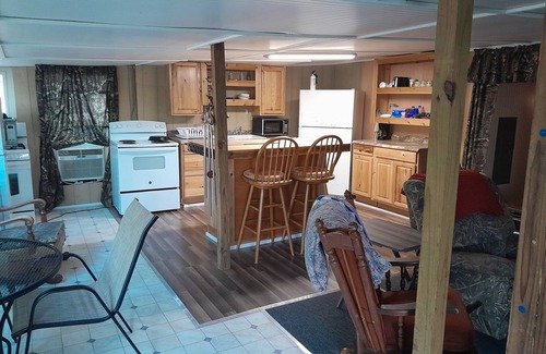 Paw Paw's Cabin #2 is just 2 blocks, walking distance from the Monterrey Pk an Boat launch on Lake Sam Rayburn. 2 Bed rooms, 1 bath, full kitchen, sleeps 6 to 8, 4 beds, 1 King, 1 Queen, 2 twins. Country quite an safe at the dead end of the single entrance Rd of Monterrey Pk Rd, all family owned properties here, set on three acres of private land with the National Forest an Core property just behind us. Perfect for the Fishermen an woman wanting to be right at the lake, or the family get away to the lake with the nice
