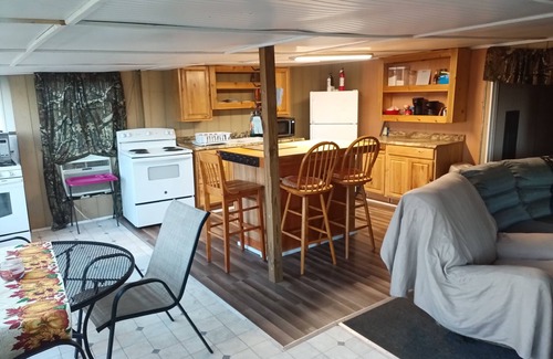 Plenty of Boat Parking, plugs for charging, come an enjoy the Lake and country quite. Quaint cabin, not the fancy lake home, Just two years old makes for a very clean nice kitchen and bathroom. Full amenities provided, sheets, towels wash clothes an all cooking utensils full kitchen with the grill and BBQ pit out front/back.