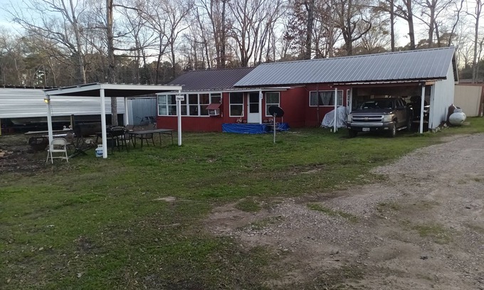 Paw Paw's Cabin #2 is just 2 blocks, walking distance from the Monterrey Pk an Boat launch on Lake Sam Rayburn. 3 Bed rooms, 1 bath, full kitchen, sleeps 7 to 8, 4 beds, 1 King, 1 Queen, 2 twins. Country quite an safe at the dead end of the single entrance Rd of Monterrey Pk Rd, all family owned properties here, set on three acres of private land with the National Forest an Core property just behind us. Perfect for the Fishermen an woman wanting to be right at the lake, or the family get away to the lake with a nice country stay.