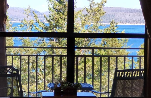 Beaver Lake Cabin directly on the waterfront of Beaver Lake, Eureka Springs, AR. with boat dock/slips/swimming/fishing/sun deck. Two story log cabin sleeps 8 comfortably with a Max of 10. *Note* To access lower level you must use an outside stairwell.