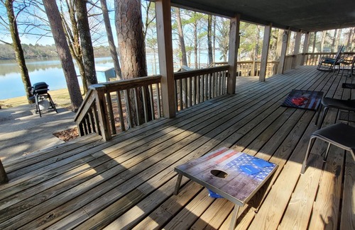 Unwind to hilltop views from this private cabin on Harris Brake Lake. Enjoy coffee on the two covered patios, BBQ in the picnic area, and s'mores by the fire. Wet a line on the private dock to catch fish stocked by the Arkansas Game and Fish Commission. Visit nearby public piers or check out boat rentals available at Coffee Creek marina. Hike historic Petit Jean Mountain or enjoy nearby attractions in Little Rock, Conway, and Hot Springs. Come see nature at its finest and let us host your stay.