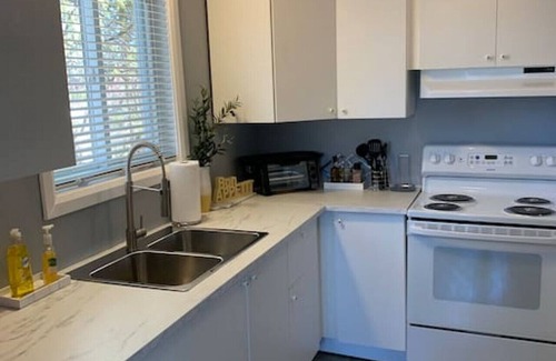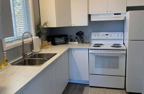 The amenities at this property cater to all your needs, featuring a fully-fenced backyard complete with a cozy firepit, creating the perfect setting for evening celebrations under the stars. Inside, you have approximately 1000 ft² (92 m²) of space that includes two comfortable double bedrooms, a living room with a futon couch, and a fully equipped kitchen. High-speed Wi-Fi and a Smart TV enhance your stay, allowing you to stream your favorite shows or share wedding updates with friends and family. Enjoy the convenience of free secure driveway parking for up to three vehicles and on-site laundry facilities to keep your wedding attire fresh during your stay.