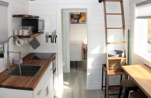This beautiful tiny home also has a private hot tub for your use. After a day on the lake, you can return to your private deck and grill up your food on the private BBQ. Remember pontoon boat rentals, SUP rentals, and kayak rentals.