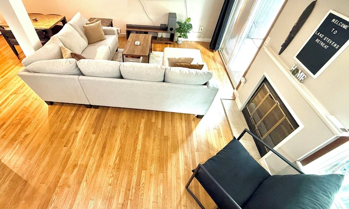 Best-rates for the Lake Stevens Retreat starts from $268 per night with includes Balcony/Terrace, Wellness Facilities, Barbecue/Outdoor Cooking, Security/Safety, Sports/Activities, Fireplace/Heating, Child Friendly, Air Conditioner, Bedding/Linens, Entertainment, Internet, Parking, TV, Guest Services, Kitchen, Laundry with all other amenities. Perfect for Weddings is committed to ensuring every guest experiences a comfortable and extraordinary stay, whether planning a romantic getaway, a honeymoon, a pet-friendly stay, or celebrating with the entire wedding party.