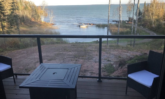 Kick back and relax in this calm, stylish lakefront space. Enjoy your own separate guesthouse located in beautiful Black Bay on Lake Superior, 40 min drive to Thunder Bay. Perfect for fishing, hiking, relaxing and outdoor enthusiasts - close to Sleeping Giant Provincial Park and Mount Baldy Ski Hill, quick stop off the highway. Watch sunrise/sundown on private deck with gas fireplace or lakeside firepit. Natural beauty abounds with all season activities available on site or nearby!