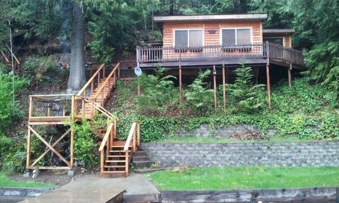 Nestled on famed lake Sutherland is a romantic Port Angeles lakeside cabin. The jewel of the crown of this house is the bedroom with views across the lake. In addition, a new state of the art kitchen offers many amenities. Last but not least escape onto the deck overlooking the lake or hang on the dock and enjoy your perfect view of the northwest mountain area.