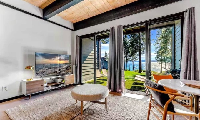 Location perks: Lake Tahoe (on-site), Speedboat Beach (0.6 miles), Northstar California Resort (7.3 miles), Tahoe City (10.4 miles), Alpine Base Area at Palisades Tahoe (17.6 miles)