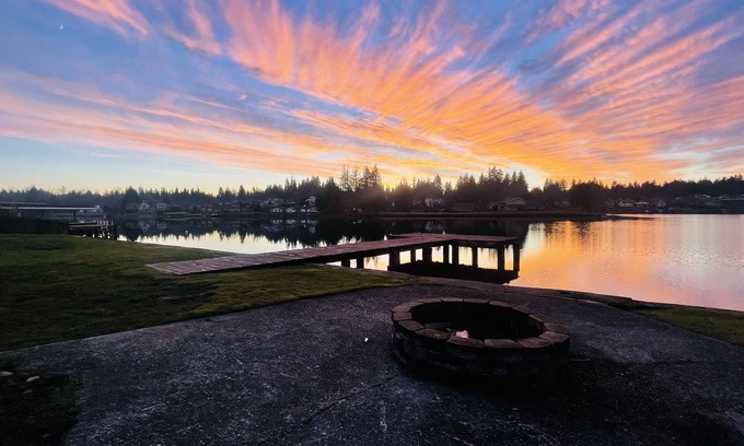 Welcome to our resort-style lake house! Our property is ideal for families with children, extended family gatherings, or a girls' night out. The 2,644 sq ft house is equipped with Wi-Fi, a large-screen TV, and fully functional kitchen facilities. You can unwind on the beach chairs, engage in conversations around the fire, all while savoring the breathtaking view of the lake! Our home is conveniently located approximately an hour away from Crystal Mountain Ski Area, Mount Rainier, and Seattle.