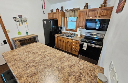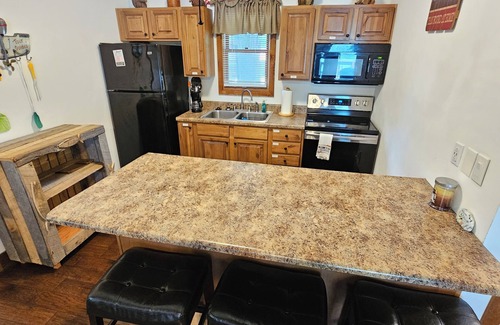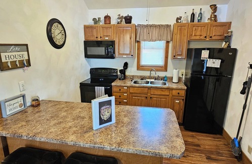 Lake-themed duplex includes both cabins for rent! Offering 4 queen beds, 2 sofa beds, 2 kitchens, and 2 living rooms, ensuring ample comfort and privacy while providing for twice the fun!