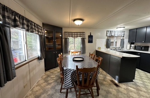 Formerly part of the renowned Pinewood Resort, our property is now part of the Pinewood Condo association, granting you shared access to the pristine waters of Lake Thompson. Enjoy days spent lounging on the sandy beach, swimming out to the seasonal raft, or docking your boat at one of the multiple piers. Two dedicated parking spaces are available at the house, with additional parking nearby for guests. Stay connected with basic cable and Wi-Fi, and enjoy year-round comfort with wall unit air conditioning and central heating.