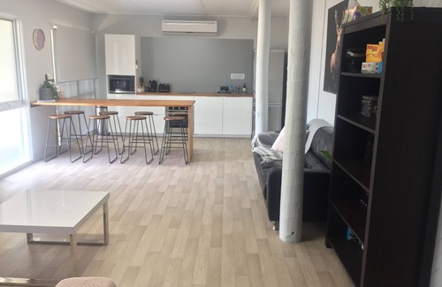 3 bedrooms, 2 rooms with queen beds and 1 with X2 sets of bunk beds to sleep a total of 8. Ideally set up for families; open plan living with full kitchen and dining to seat 8 and a comfortable lounge space. Maximum of 4 adults per booking which is managed strictly.