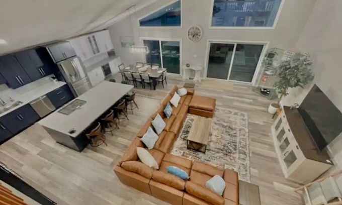 Smoke and pet free home sleeps 12, with 4 bdrms, 4th bdrm is semi-private 2nd level loft space/bdrm accessed by spiral stairs. 2 full spacious bthrms with a tub in the master bath.