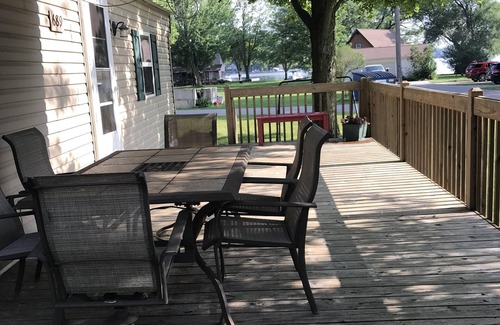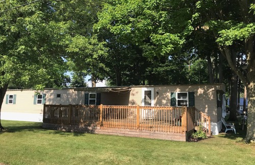 Our guests will be quite comfy in our newly remodeled vacation home with access to lake and private dock on Coldwater Lake. This home has a large deck and yard for outdoor entertainment and relaxation. All linens are included in this 3 bedroom, 2 bath home. A brand new central air conditioner will keep you cool, as well as the lake breeze... myou choose! Don't let the pictures fool you, this mobile home has spacious rooms and is furnished with 2 queen beds and 2 sets of bunk beds, and will sleep up to 8 people. The kitchen is fully equipped with stove, refrigerator, microwave, coffee pot, toaster, crock pot and all the cookware and dinnerware needed. Enjoy some delicious BBQ on the charcoal grill, while looking at the lake view. And don't forget the marshmallows, because the fire pit is ready for you!