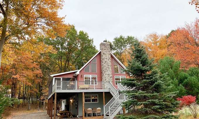 Stay at our chalet-style Pocono Mountain resort house. Nestled in the heart of the Pocono Mountains across from the lake.