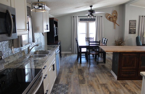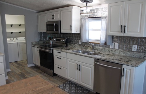 Lake View cottage, secluded, quiet, total remodel, 3 king beds has 3 Bedrooms , 1 Bathroom, and max occupancy of 6 people. The minimum rental for this property is 1 nights, but this can change depending on the season you plan on staying. Previous guests have given good rated it, and VRBO labeled it a top-rated House because of the excellent services rendered by the owner or manager of this House, and has consistently provided great experiences for their guests. Most families or guests that use it recommend it to their friends and some of them are repeat guests. House has a friendly neighborhood, and the Wagoner has interesting places to visit. If you want to learn more about the House in Wagoner, such as places to visit and things to do nearby, you can check below to learn more.