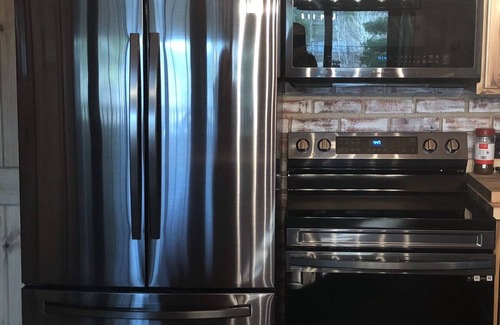 The kitchen has new appliances and cupboard and all you need to cook for your family.