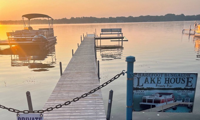 Newly remodeled lake view cottage sleeps 10 . 3 bedroom , 2 1/2 bathroom, laundry, WiFi, , kitchen with fridge, range, dishwasher, microwave, coffee maker . Linens and towels etc supplied. New fire pit, lake access. Garage / recreation area holds Kayaks, paddle boards, cornhole, tubes, life jackets , ping pong table, bikes. Private pier access to lake for beautiful sunrises , swimming, etc. Golf cart available for licensed driver . This beautiful house is only approximately 300 feet from beautiful Bass Lake, where you have your own private pier access, and can watch a beautiful sunrise every morning. In addition to being in the Bass Lake area, we are only 12 miles from Culver, approximately 12 miles from Winamac , and only 5 miles from Knox. Or enjoy a shopping day at the famous Bailey’s discount Center only 6 miles away.