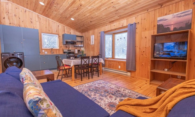 This charming lakeside loft sleeps up to 4 guests, featuring one king sized bed and a pull-out sofa in the living area. The open-concept design seamlessly blends the kitchen, dining, and living spaces. Enjoy serene lake views just outside the front door. This peaceful retreat is perfect for relaxation and enjoying nature's beauty.