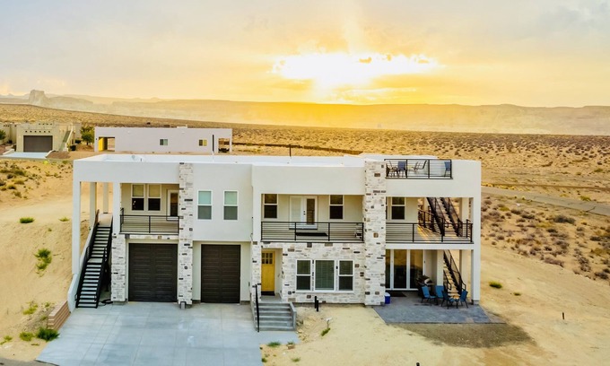 Conveniently located just minutes from Wahweap Marina and Lone Rock, the Lake View Modern House is the perfect gateway to explore the natural wonders of the area, including Zion National Park and Bryce Canyon National Park. Whether you wish to enjoy water sports, ATV adventures, or simply soak up the scenic beauty surrounding you, this location has it all. After a day of adventure, return to unwind on the patio while watching the sun dip below the horizon—an enchanting way to end a beautiful day surrounded by the people you love.