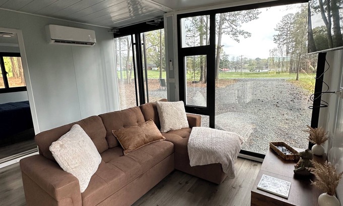Your Norwood getaway awaits at this enchanting 2-bedroom tiny house. Enjoy the lovely views of nature and the countryside with quick access to Lake Tillery, a free access boat ramp 1 mile away, and only 3 miles to downtown Norwood. There are also hiking trails at Morrow Mountain and the Uwharrie National Forest is only 15 minutes away. Inside, guests will find a cozy bedroom with 1 full bed and 1 twin bed, perfect for a good night's sleep. The bathroom features a refreshing shower and a hair dryer for convenience. Plus, there's a lovely living room with an additional full bed for extra comfort. Smart TV, heating, and AC, dishes in the kitchen anlong with the kitchen necessitates, and a Freezer/Refrigerator combo for easy storage. We also have a sitting area outside to enjoy the views. You're sure to make fantastic memories with a stay at our place.