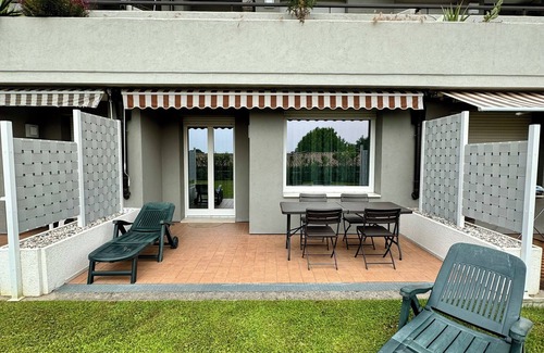 From the apartment and above all from the swimming pool area, you can admire a breathtaking lake view where you can see in front of us the famous town called Sirmione, very visited and touristy for the Grotte di Catullo but not only ... it is a strip of land in the middle of the lake absolutely to visit. The property as mentioned has a lot of green space around, ideal for letting children free to play in a very safe place and we also have a small terrace and lodge for adults, to enjoy this natural environment and to spend carefree hours together . We also have private covered parking in the garage and / or parking space outside the residence.