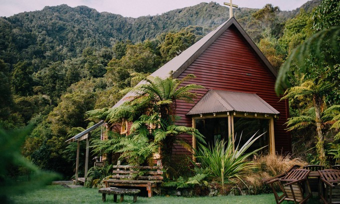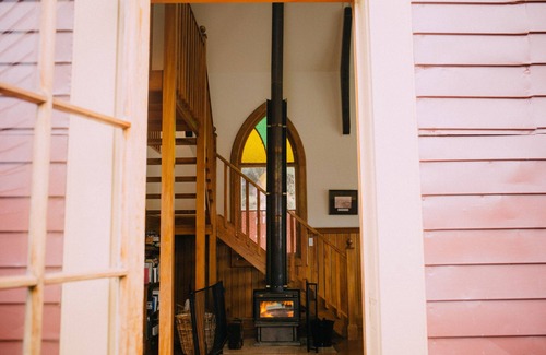 Hidden Valley Lodge is a renovated historic church in a unique secluded bush setting with panoramic views overlooking the lake and mountains on our farm surrounding the shores of Lake Poerua.