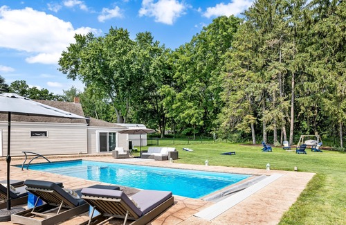 Another exquisite new Special Properties rental. Like a fine wine, Decanted represents the Best of the Very Best – Views of Sparkling Green Lake, Stunning Remodeled Year-Round Cottage on Over a Half Acre of Pristine Lush Land and a beautiful in-ground pool. Everything in walking/bike distance from this property: town, boat rental, restaurants, lake access. Special BONUS upgrades include new landscaping, private workout studio and a beautiful in-ground pool. This perfect family getaway features – 4 bedrooms and 2 ½ baths with original hardwood floors throughout with custom salvaged beams and an open concept living space, a bright sunny kitchen with views of the water and a two car garage with a workout studio attached all set amongst towering mature trees and landscape. This more than amazing lake cottage is beaming with light from the walls of windows and has been recently refurbished with newer kitchen and appliances, up to date bathrooms & an extra bedroom. This dream rental property has limited availability – book before it fills.