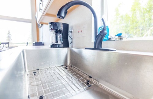 - Dish towels, paper towels, dish soap, dishwasher pods, sponge, and dish brush all provided for quick cleanup after meals