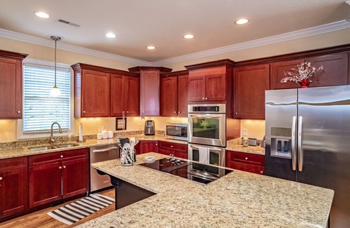 Inside, the home offers 6 comfortable bedrooms (including two with 3 beds each), 6 modern bathrooms, and multiple game and activity rooms for all-ages fun. Gather in the spacious living areas, cook together in the expansive granite-countertop kitchen, and enjoy plenty of parking with a circular driveway. Guests will have full access to the entire home, ensuring a relaxing and memorable stay.