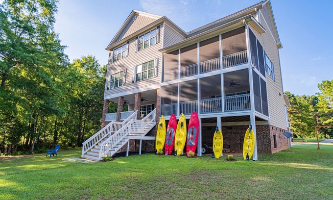 Lake Wateree Waterfront Retreat - 6BR w/Dock, Kayaks, Firepit and Game Room is located in Winnsboro. Lake Wateree Waterfront Retreat - 6BR w/Dock, Kayaks, Firepit and Game Room provides accommodation, featuring TV, Ocean View, Wellness Facilities, among other amenities. This House features TV, Ocean View, Wellness Facilities, to make your stay a comfortable one.