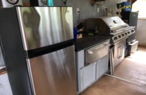 From the deck you enter your private retreat of over 1750 sq. ft. our spacious and beautiful home on the lower level which is the closest to the pool, lake and an outdoor kitchen with bar with a gas grill, electric smoker, and refrigerator.