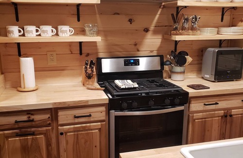 You will be surrounded by Adirondack décor. The home is newly renovated throughout, and you are just steps from the lake. We supply you with everything you need to in the new kitchen from pots and pans, microwave, coffee pot, hot water pot, utensils, measuring cups, etc. We even supply you with a large array of spices. We just installed a new gas fireplace/stove to help take the chill off. The temperature is controlled with a thermostat and all of the rooms also have baseboard heat, each with their own thermometer.