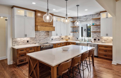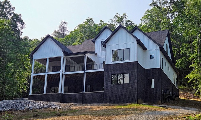 This newly built, gorgeous Cottage sits Lake Front on the iconic Norris Lake, TN. Tucked back in a private cove with over 300' of shoreline. Golf Cart path takes you down to the covered dock for fun in the sun! Golf Cart included in rental. Enjoy the kayak, paddle board, or just relax on the upper deck. Sleeps 24 with 7 bedrooms: first floor Owner's Suite and Mother-In-Law Suite. Second floor: 3 bedrooms with 1 queen bed and 2 Kings. Walk-out basement has two bedrooms: First bedroom boasts a King, second large bedroom with 4 sets of bunk beds, 2 full over full size and 2 twin over twin size. Basement rooms share a full bathroom with tub/shower and large vanity. All bedrooms have a TV except bunk room. We designed the cottage to accommodate 4-6 families very comfortably!
