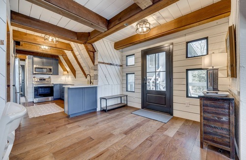 Newly renovated and expertly decorated, you will feel right at home the moment you enter. With rustic shiplap, a wood paneled basement entertainment space, a loft lounge, and a deck with a beautiful view, you won't want to leave behind the charm of Lake Haven A-Frame.