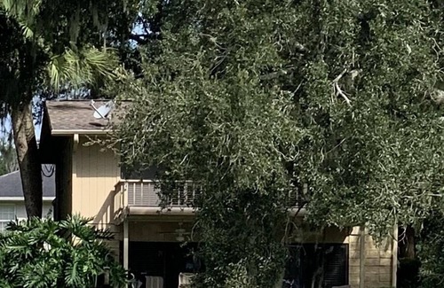 View beautiful oak trees and lake from your porch and living area of the house. Bird watch every day and fish for bass or blue gills from your dock.