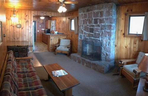 Cabin #6 the Walleye is a 3br cabin that can sleep up to 6. Dockspace is limited, additional space available by the fish house at South end of the resort. Bedroom 1 has a full bed, bedroom 2 and 3 have two twin beds. There is parking space for 2 cars or one truck and smaller trailer if you are skilled squeezing in, otherwise use trailer park spaces by garages.