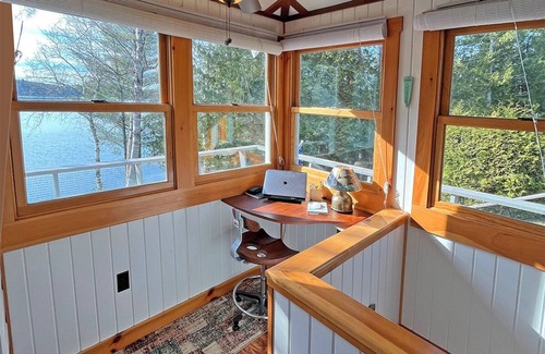 Unwind on Lake Salem at this adorable cabin. With 3 bedrooms including 1 queen bed and 2 full beds, this cozy retreat offers a terrific living room with a bunk bed for extra sleeping space. Enjoy the convenience of amenities like a washing machine, AC, WiFi, and more. The primary bathroom is equipped with a shower and a hairdryer. The 1/2 bath is conveniently located on the upstairs living area. The beauty of this cabin is the exceptional sunsets facing west across the lake, multiple indoor and outdoor areas for varied activities or privacy, and it is fully equipped with canoes, SUPs & a kayak for your enjoyment. This year-round cabin is perfect for Summer, Autumn, and Winter. There are 4 ski resorts nearby (Jay Peak is the closest), and we are directly on the VAST trail. We are 5 miles from the Canadian border to enjoy Nordic spas or stroll around the adorable town of Magog. We hope you'll enjoy our cabin as much as we do.