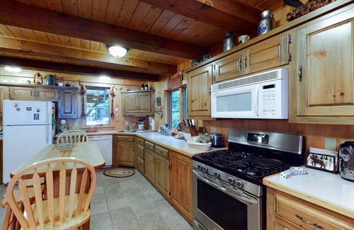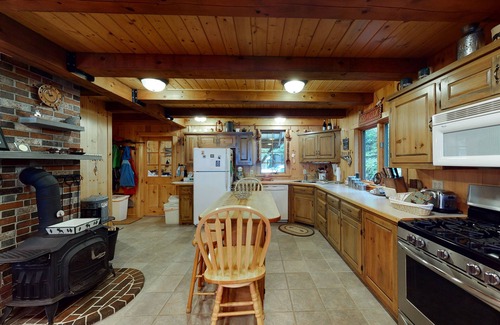 Tucked away among the evergreens on the beautiful shores of Moosehead Lake, this comfy cabin is full of warm, natural woods lovingly handcrafted by the original owner. The fine Norwegian craftsmanship embodies the quintessential character of Maine's North Woods. Sip your morning coffee on the covered porch while overlooking the lake through wispy pines. Prepare hearty Northwoods breakfasts in the fully-equipped kitchen and enjoy chilly nights playing board games around the dining room table in this warm cabin.