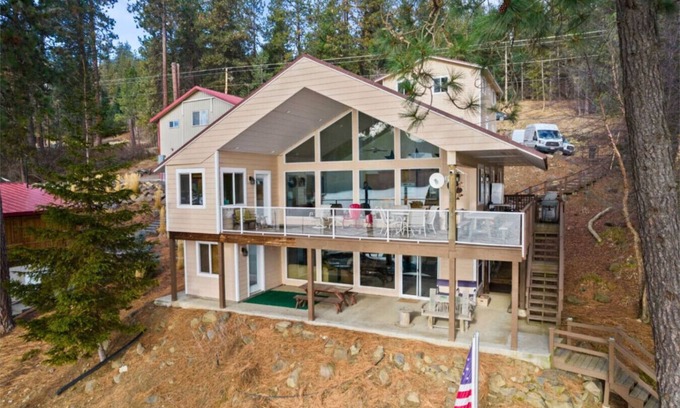 This 3-bedroom waterfront cabin offers the perfect blend of relaxation and fun, with stunning lake views and plenty of amenities to keep everyone entertained. Conveniently located just a short drive from Spokane and downtown Coeur d’Alene, it’s the ideal spot for your family’s next vacation. (BYO-Life Jacket)