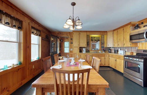 Located on the shores of Lower Wilson Pond just a few miles east of Greenville, this cabin boasts privacy in a peaceful, wooded setting, making it easy for getting away from it all. Walk just 75 feet from the house to reach the lake and a pebble-bottomed swimming area.