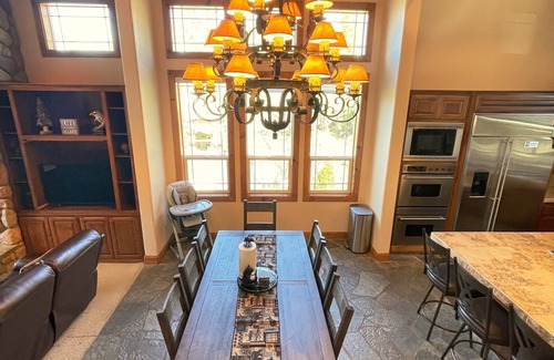 Living room has a large beautiful wood burning fireplace, smart TV with WIFI so you can still access all your favorites Netflix and Hulu shows! The living room has 3 large sofas for seating for 9 with 6 reclining chairs so the adults can relax to a movie while the kids are playing down stairs in the game room !