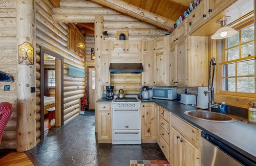 A relaxing mountain escape from everyday stress awaits you at this lakefront cabin. Keep cozy by throwing a log into the woodstove, or sit out on the back deck and take in the stunning lake views and soak up the summer sun. The kitchen has a mini-fridge, a full-size stove, and an oven. Spend your next Greenville getaway at the Fisherman's Hut!