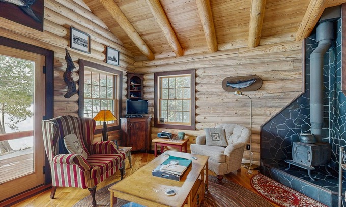 Lakefront cabin with woodstove, beautiful mountain views & private swimming dock is located in Greenville. Lakefront cabin with woodstove, beautiful mountain views & private swimming dock provides accommodation, featuring Toiletries, TV, Oceanfront, among other amenities. This Cabin features Toiletries, TV, Oceanfront, to make your stay a comfortable one.