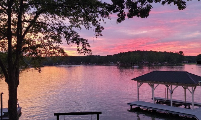 Welcome to our peaceful 1400 sq ft lakeside cottage on Logan Martin Lake near Pell City! Inside find 2 KING beds as well as 3 full bunks with 1 twin. Outside, you'll find 3 inviting patios where you can soak in breathtaking sunsets. Enjoy ample parking, a cozy firepit, and swim docks plus a lily pad to play on, adding to the charm of our lakeside oasis. With a convenient boat ramp onsite, and new boat whips on the pier, you can easily enjoy your lakefront vacation. Marina with dining/boats near.