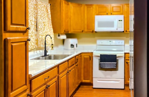 * Fully equipped kitchen with cookware, spices, and a Keurig coffee maker