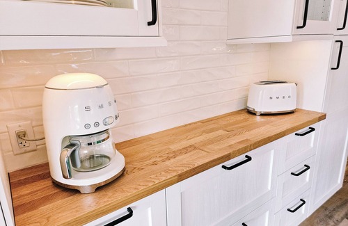 Fully stocked kitchen with everything you'll need to prepare meals. Cooking essentials (oil, s&p, spices, ketchup, mustard, relish), coffee (Smeg drip coffee machine), basic cleaning supplies and dishwasher tabs, all provided.