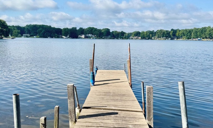 Enjoy tranquil mornings watching the sunrise over the lake and relaxing evenings with sunsets on the water. Amazing lake views from the deck or just a few short steps down to your own private dock.Your cozy lake cottage in Columbiaville offers 2 bedrooms - one with a king bed, one with a queen bed, and a bunk bed for a good night's sleep. The living room and office provide extra space for relaxation or work. With amenities like AC, iron, hair dryer, and heating, guests will feel right at home. Our place is equipped for both long or short stays to make your holiday one to remember.